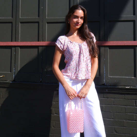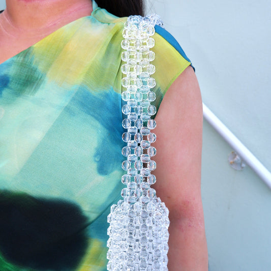 WHIMSY077 - handmade beaded clear structured baguette bag