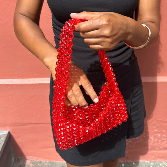 WHIMSY050 - handmade beaded red shoulder bag with thick strap